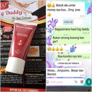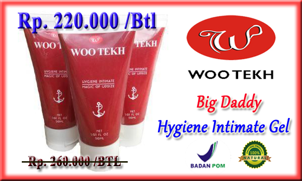 Woo Tekh Big Daddy-Hygiene Intimate Gel adalah produk yang dibuat khusus dengan menggunakan bahan herbal alami untuk meningkatkan vitalitas pria. Selain untuk menambah ukuran dan volume alat vital pria, Big daddy juga mampu membantu mengatasi masalah ejakulasi dini.